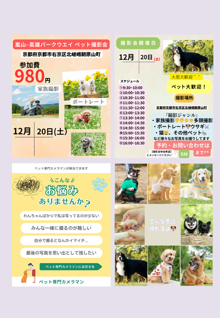 嵐山‐高雄パークウエイにて 12月20日(土) 【ペット専門カメラマン】による犬の撮影会が開催されます。