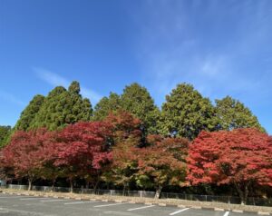 小倉山cafeの2本の大きなもみじの木もそろそろ色付き始めております。
