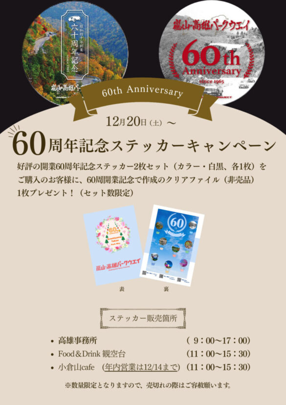 開業60周年記念クリアファイルを1枚プレゼントいたします。